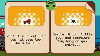 - Each page of your stamp book shows a different bug, a fact, and a stamp if you've collected it.